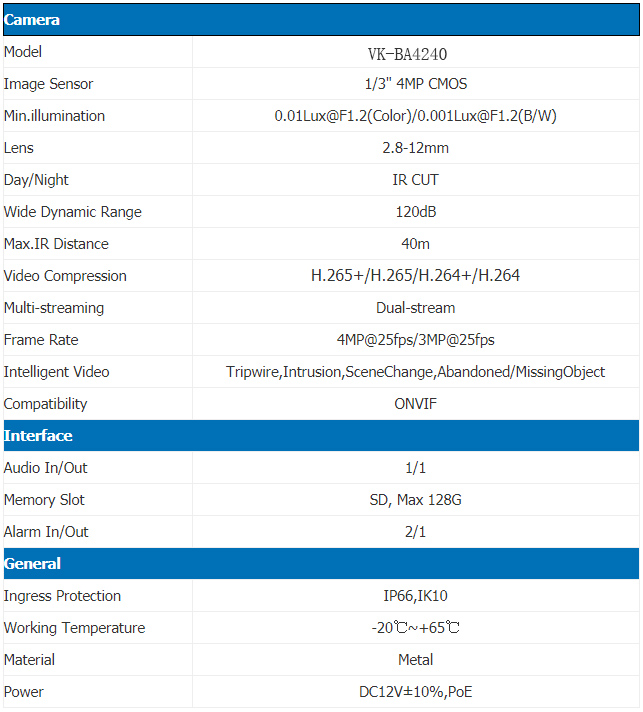 Support H.265+/H.265/H.264+/H.264 video compression, multi-level video quality configuration;